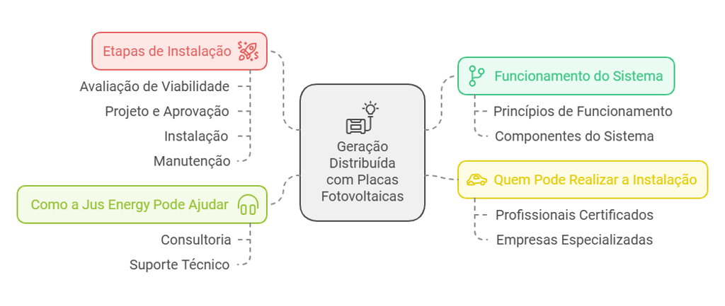 A geração distribuída por meio de placas fotovoltaicas tem se tornado uma solução cada vez mais viável e popular para a produção de energia sustentável. Este artigo aborda o funcionamento desse sistema, as etapas para sua instalação e quem pode realizá-la, além de destacar como a Jus Energy pode auxiliar nesse processo.